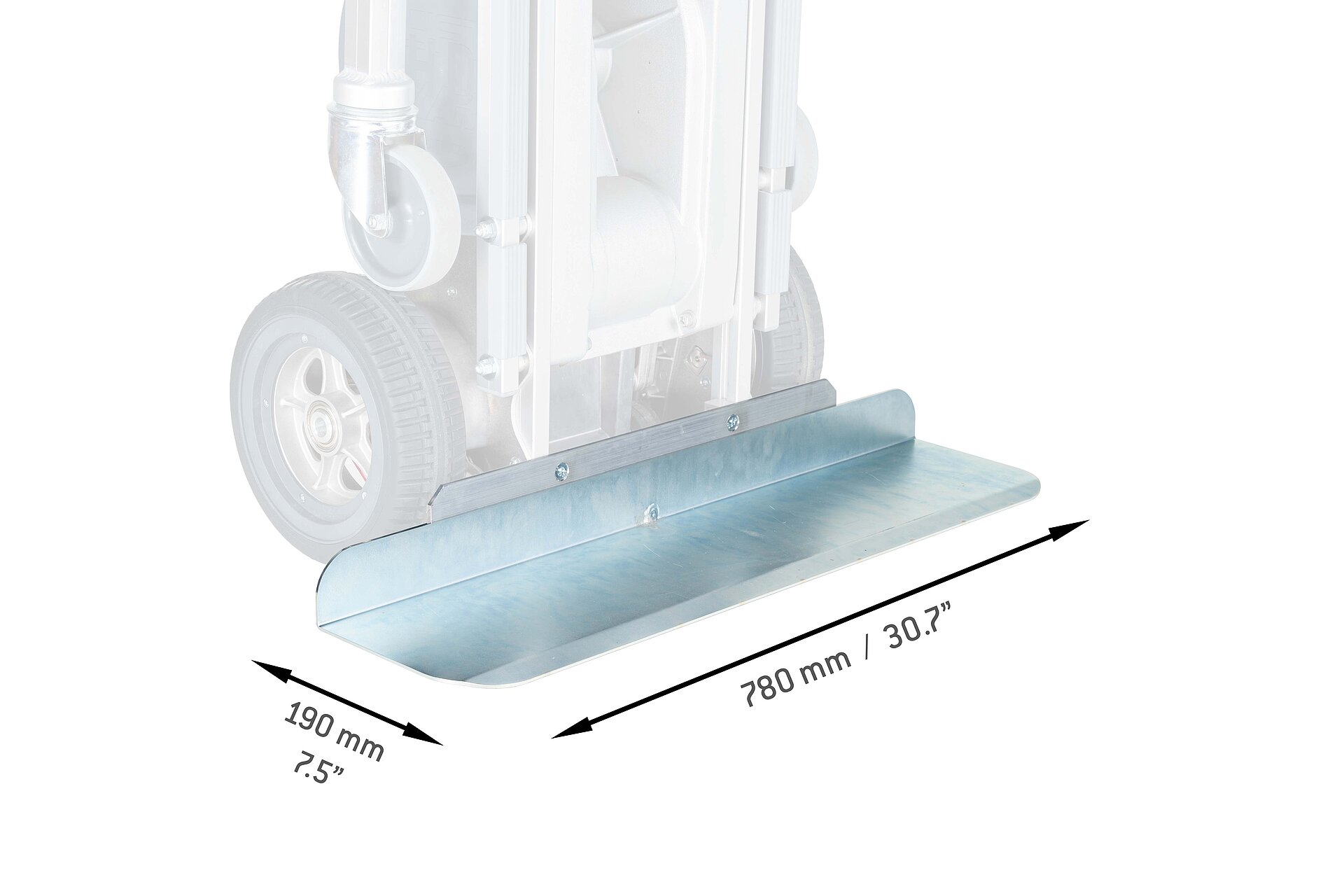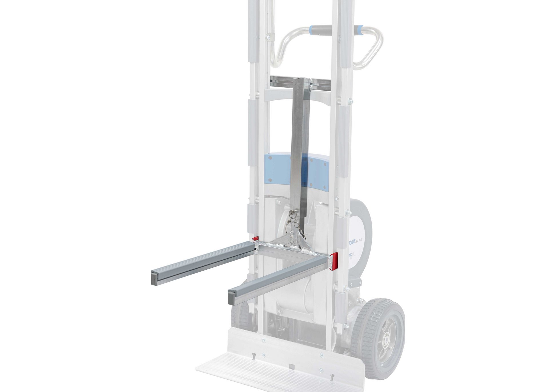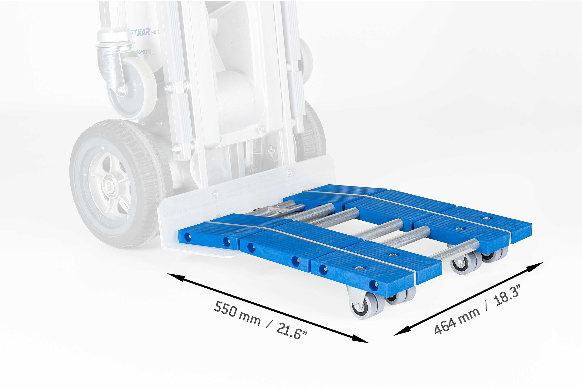 Wie heißt's so schön? Die Mühen der Ebene müssen auch bewältigt werden! - Mit dem LiftKar HD DOLLY geht das besonders schnell und ohne große Anstrengung. Wenn die Treppen gemeistert sind, kommt auf der geraden Strecke das fix angebaute Dollysystem zum Einsatz. Es geht nicht immer nur treppauf und treppab. Oft sind die Wege zum Parkplatz oder auf dem Firmengelände weit. Und die legt man mit dem Dollysystem bedeutend schneller zurück. Mit ausgeklappten Stützrädern können die Lasten mit geringem Kraftaufwand auf der Ebene geschoben werden.
