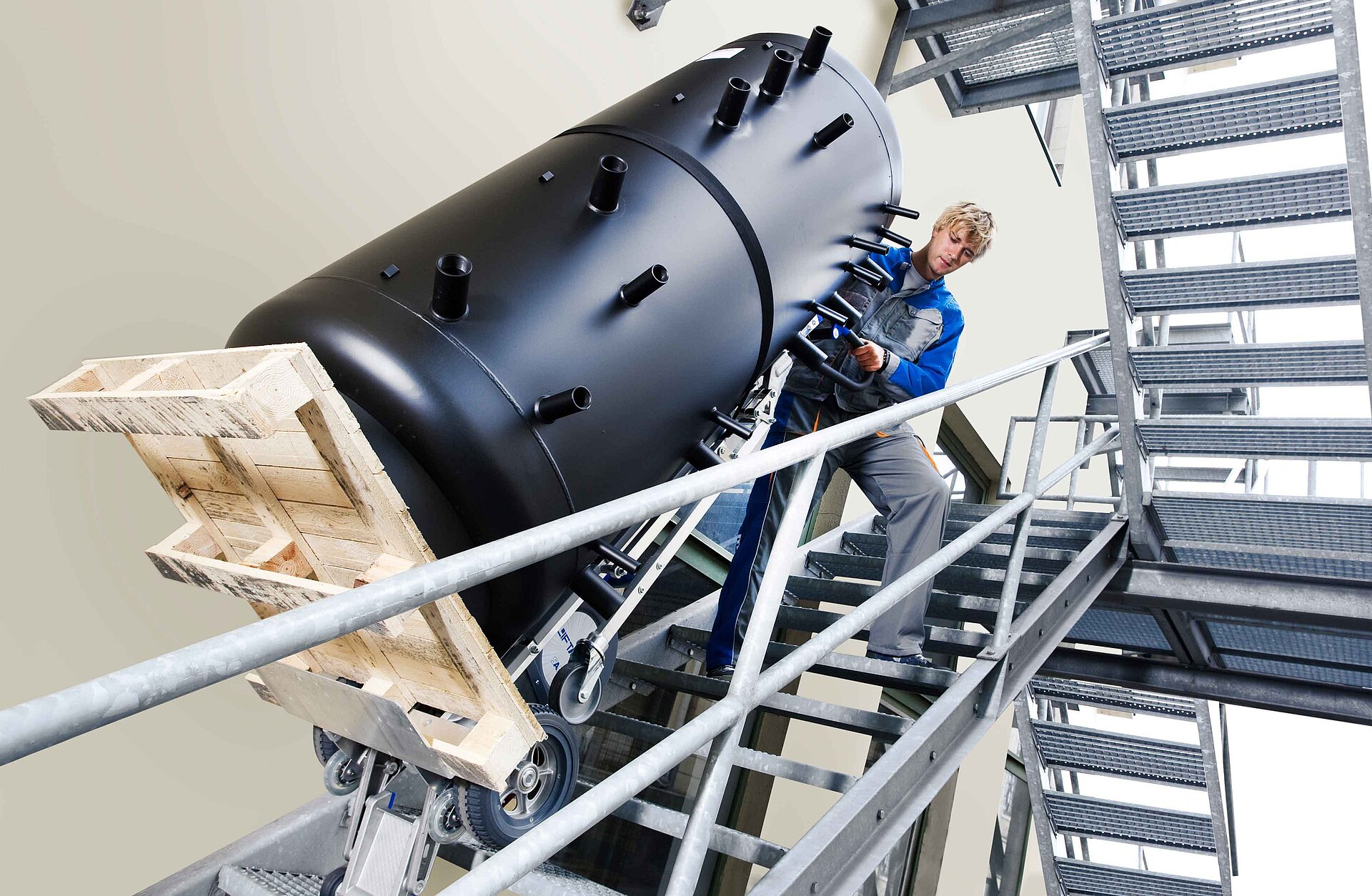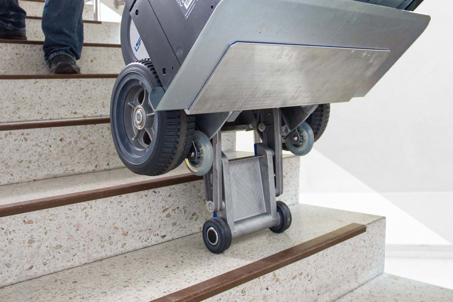 perfekt ausbalancierte Steigeinheit für sicheres Arbeiten auf der Treppe