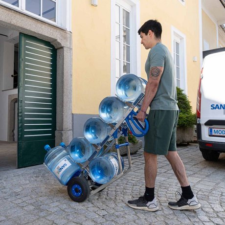 Wir präsentieren den ModulKar AQUA BOXER, die neueste Ergänzung unserer innovativen Produktlinie, speziell entwickelt um Wasserlieferungen zu optimieren. Diese robuste Handkarre kann bis zu 7 Wasserflaschen (und bis zu 300 kg) tragen und eignet sich somit hervorragend für den anspruchsvollen Wasserlieferungsservice.
