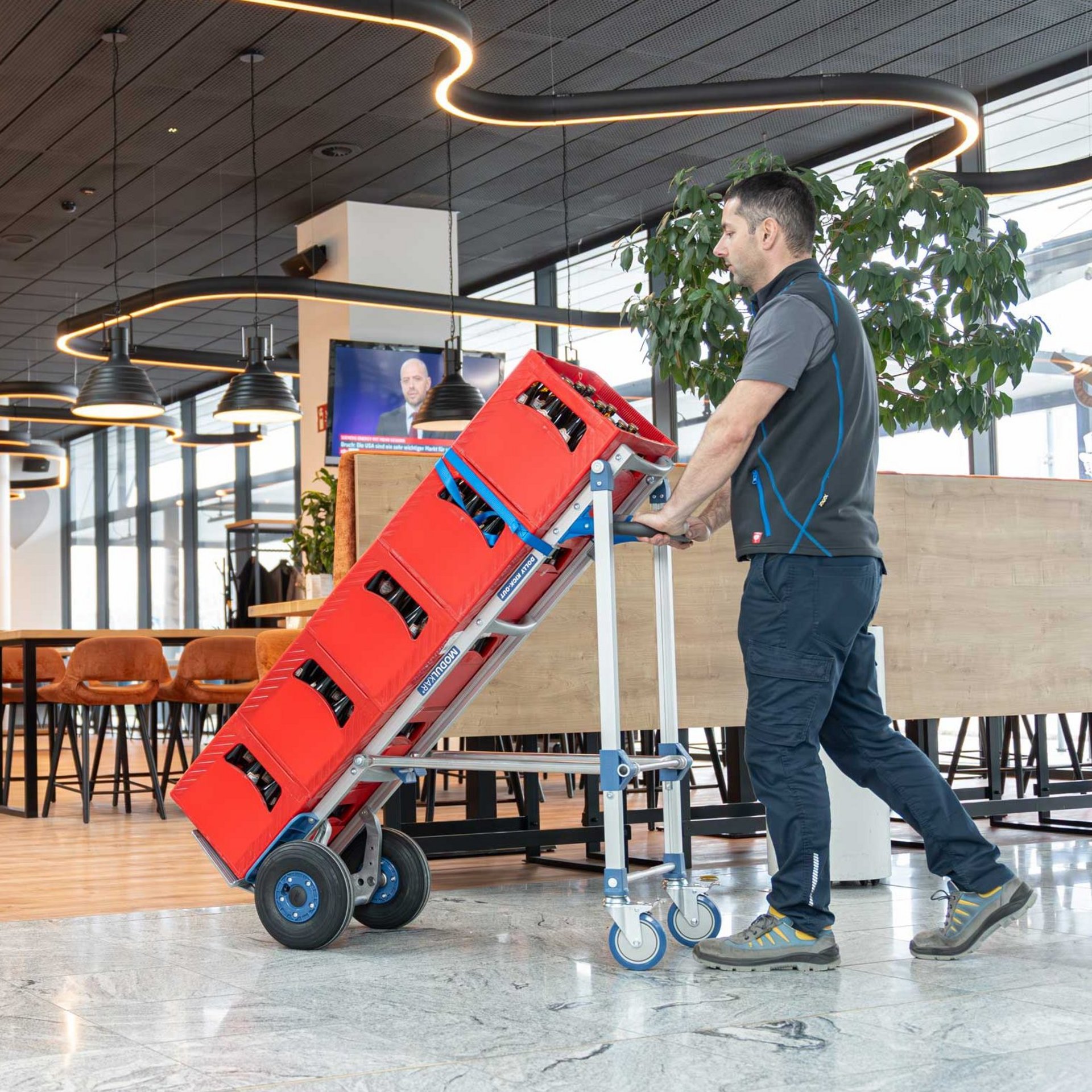Die professionelle Sackkarre: Der ModulKar BOXER ist auch für den Transport auf langen, ebenen Wegen geeignet. Ausgestattet mit Treppengleitkufen, eignet er sich perfekt für Branchen wie Getränke, Paketdienste, Möbeltransport, Bauwesen und viele mehr.