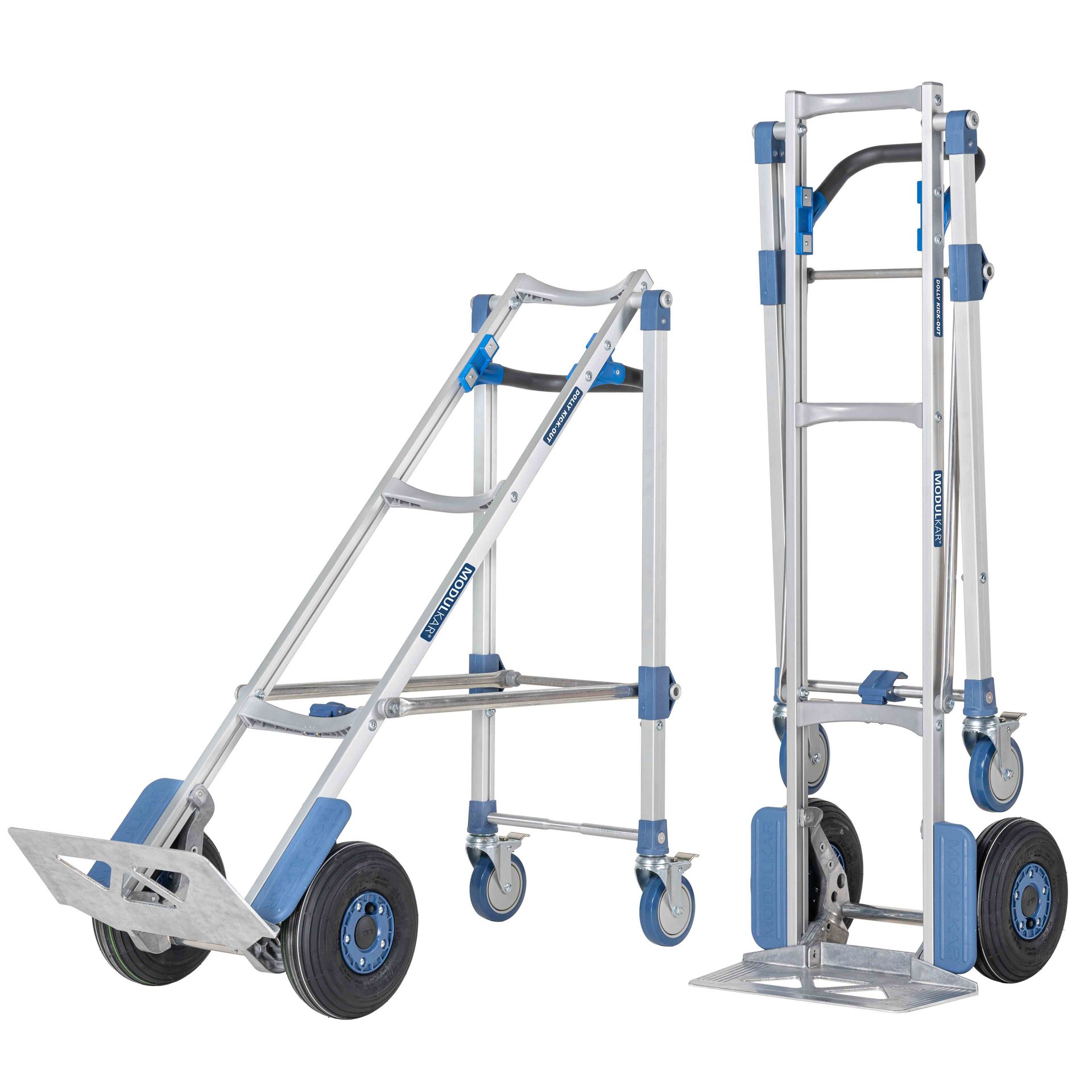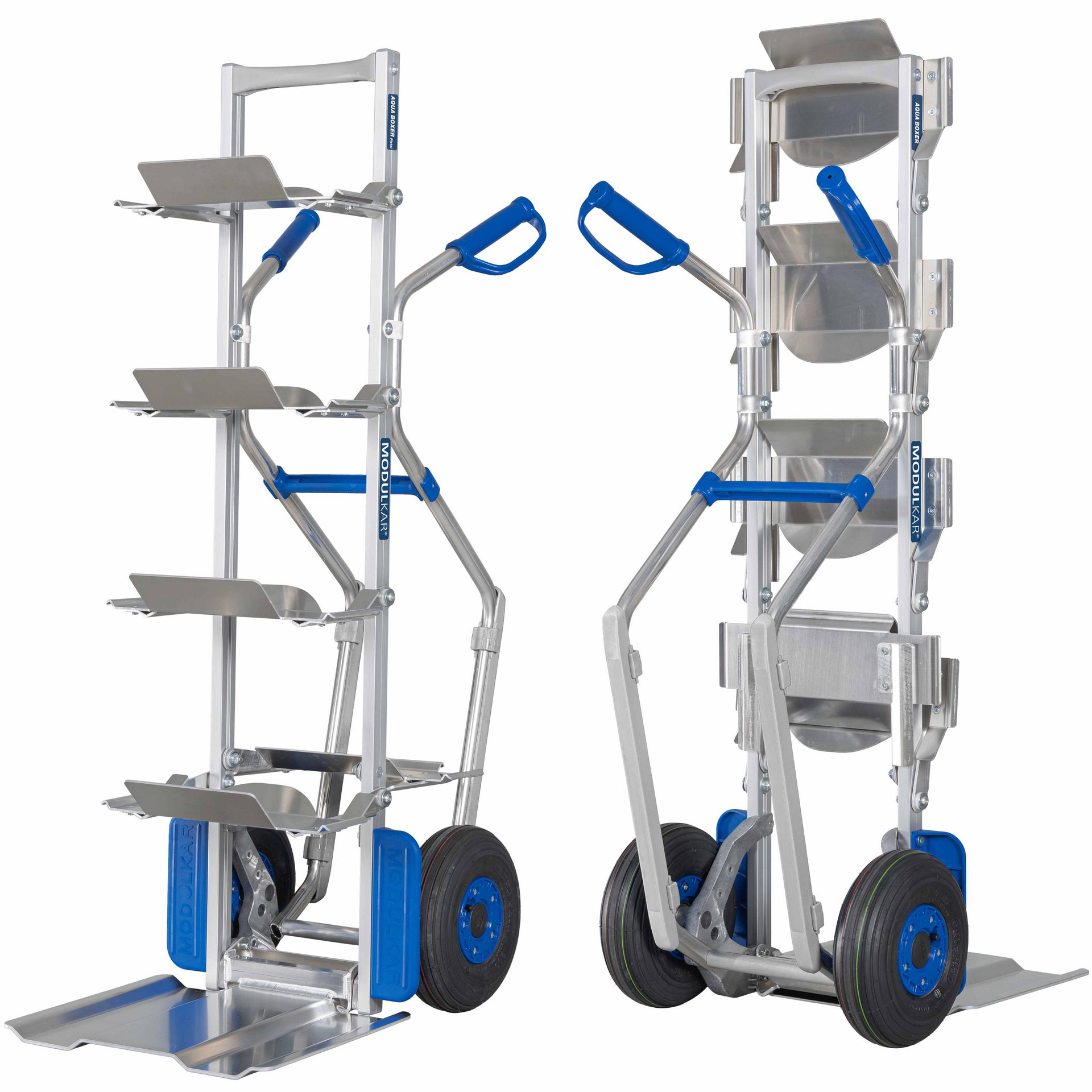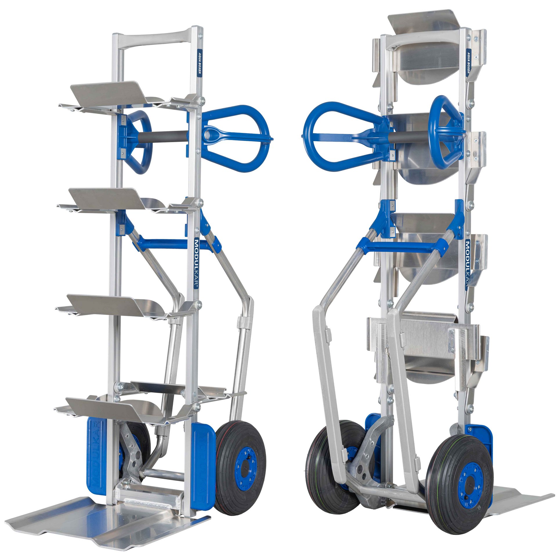 ModulKar ist eine Handkarre gebaut aus den hochfesten Teilen der Treppensteiger. Also der LiftKar SAL ohne Motor. Die modulare Bauweise macht ein Wechseln aller Teile möglich. Damit kann der ModulKar an die verschiedensten Transportsituationen angepasst werden. Die maximale Tragkraft beträgt 350 kg*.
