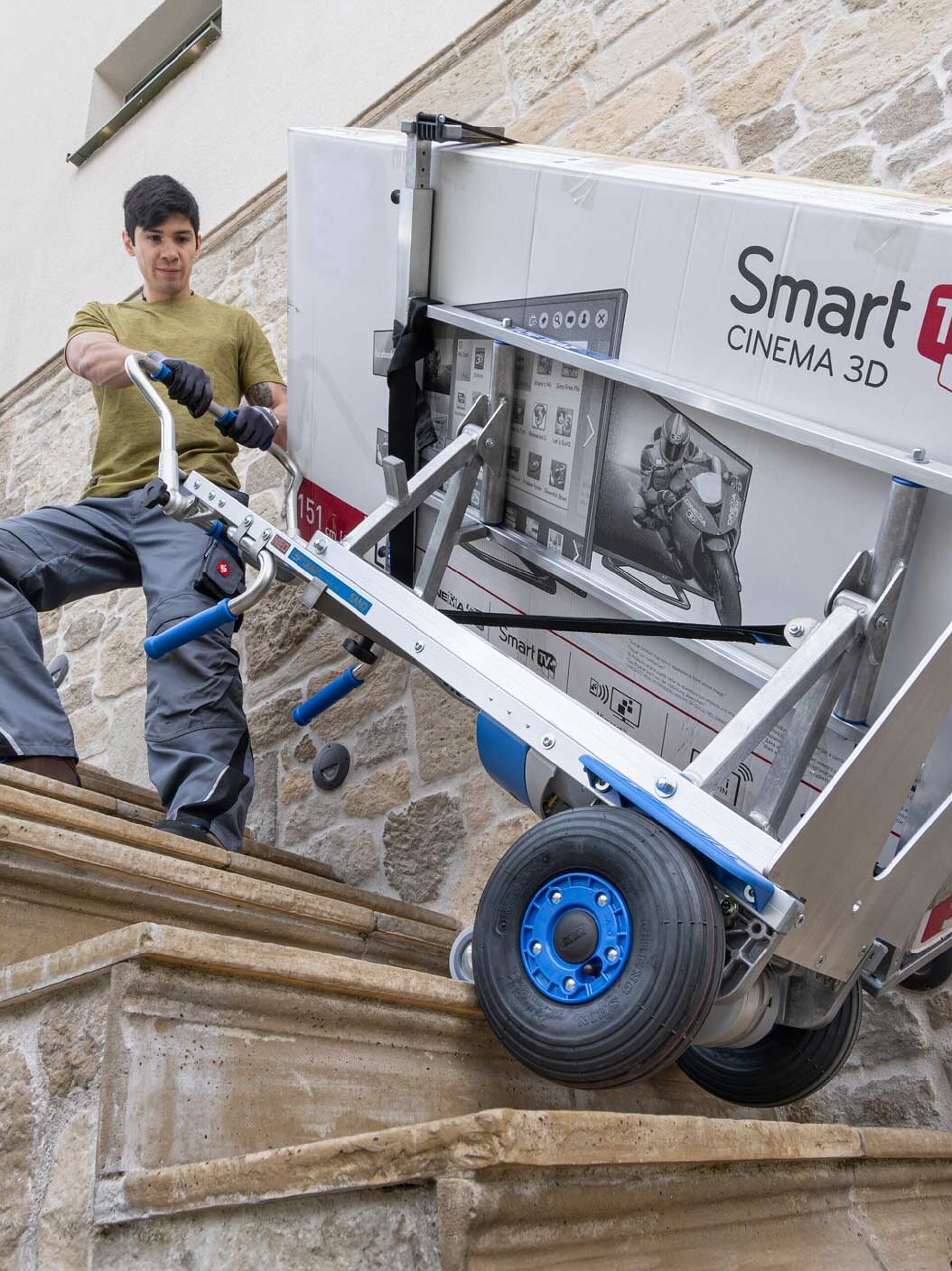 Nuestros sube-escaleras eléctricos de la línea LiftKar SAL y NEO LiftKar SAL revolucionan la logística y el transporte de paquetes en diferentes tamaños y categorías de peso. No importa cuántas escaleras deban superarse, nuestros sube-escaleras permiten el transporte sin esfuerzo de paquetes de hasta 170 kg, con una asombrosa autonomía de hasta 2000 escalones.
