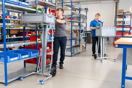 El UniKar puede elevar de forma cómoda y segura cargas de hasta 120 kg a una altura de 110 cm. Bajo demanda, se puede suministrar también con otras alturas de elevación hasta 160 cm (en incrementos de 10 cm).