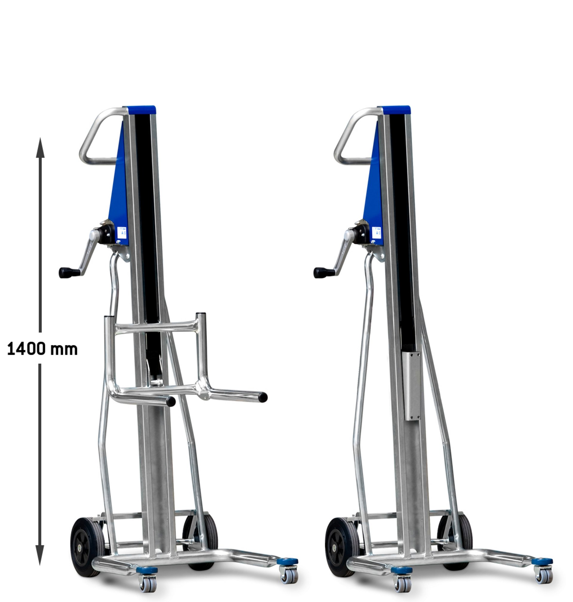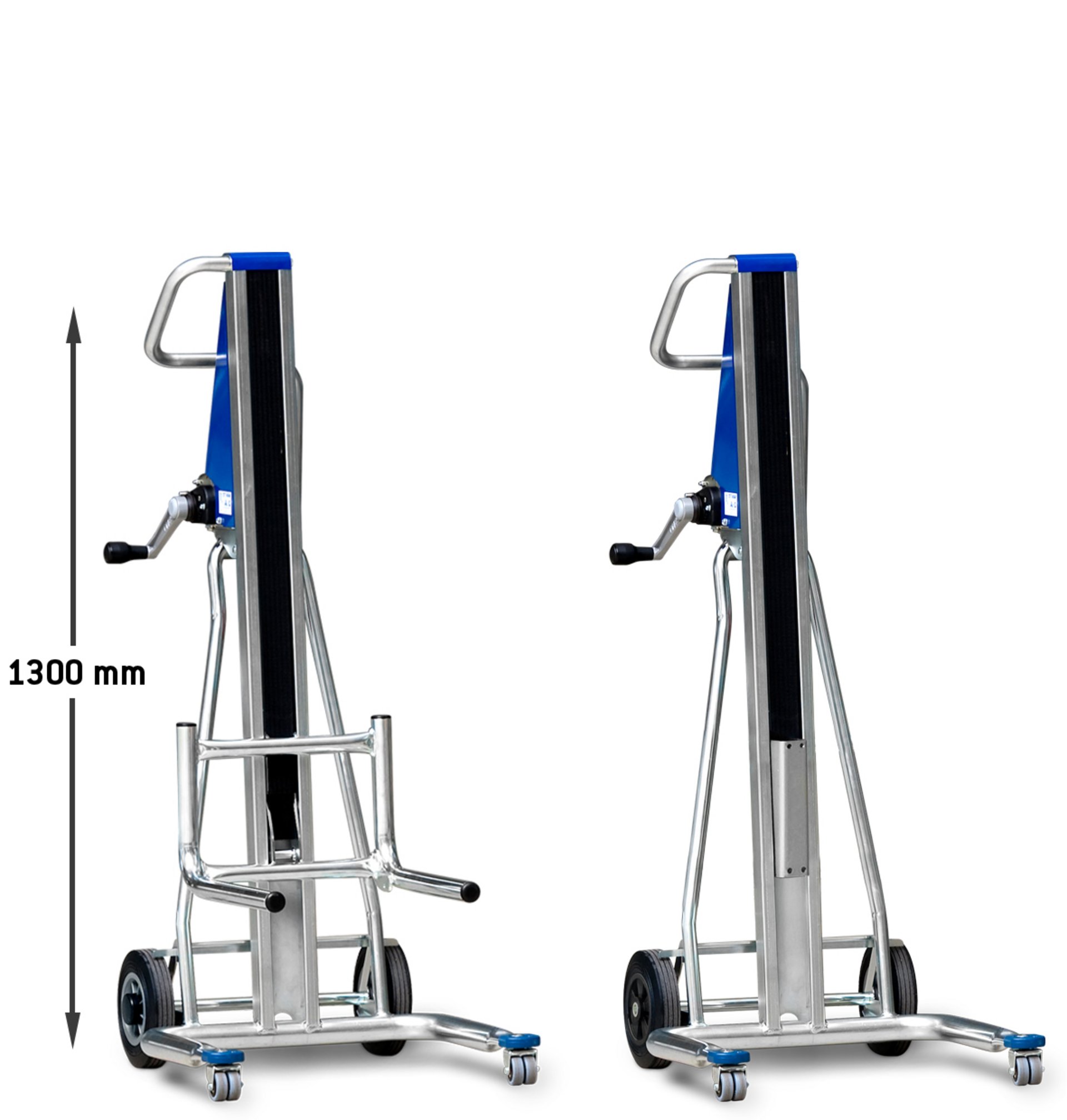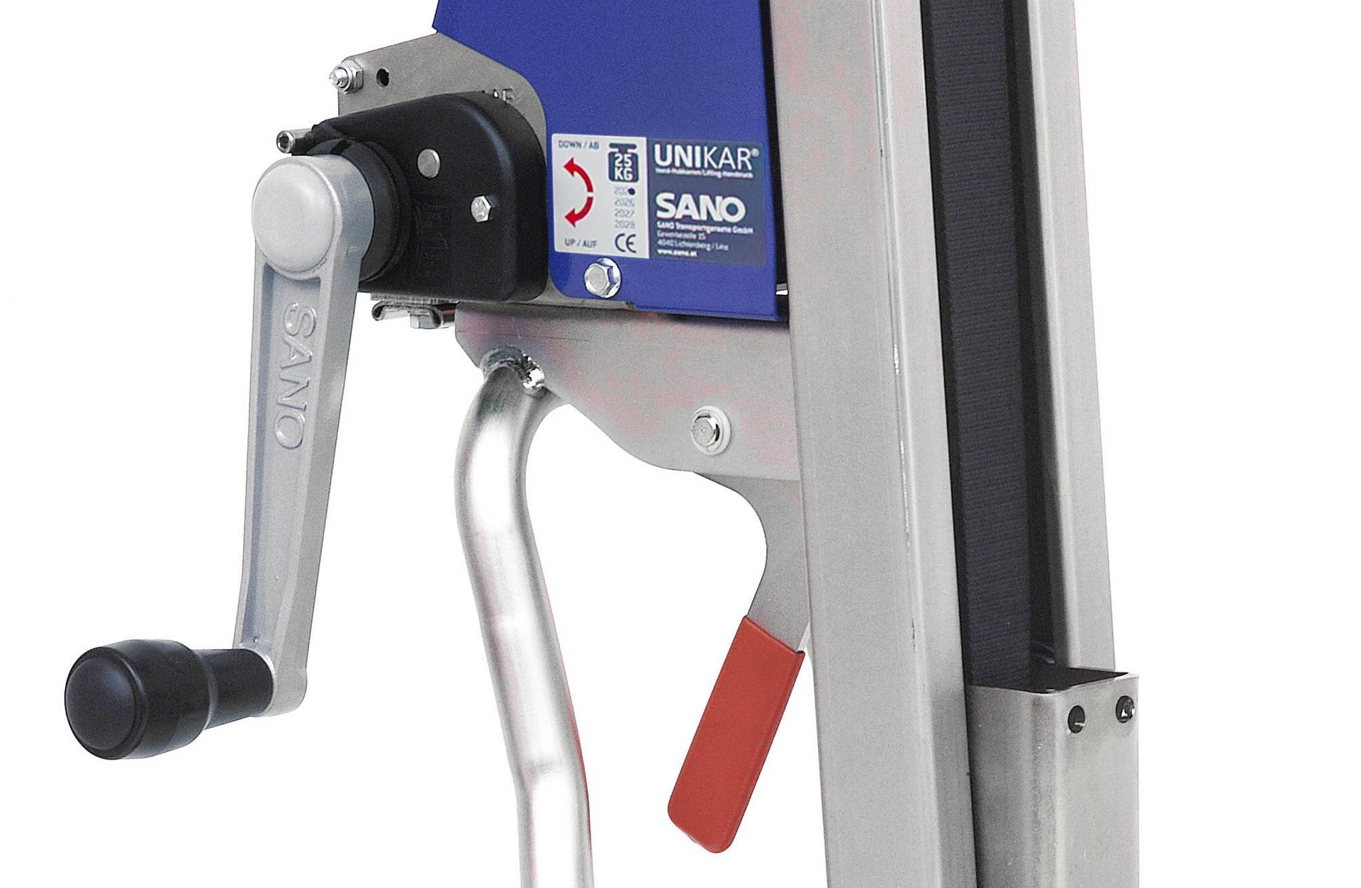 L’UniKar a été construit avec une sangle de 50 mm de largeur à la place des chaînes ou des câbles en acier. Il est ainsi silencieux, ne nécessite pas d´entretien supplémentaire et reste propre. Malgré son faible poids, il peut transporter des charges jusqu’à 120 kg à des hauteurs allant jusqu'à 1600 mm. Les deux modèles de base équipés des accessoires en option permettent d’adapter le diable élévateur UniKar à toute situation. Dans sa version de base, le diable élévateur UniKar a une hauteur de levage de 1100 mm. D’autres hauteurs de levage de 1300 mm allant jusqu’à 1600 mm sont disponibles sur demande (par incréments de 100 mm).