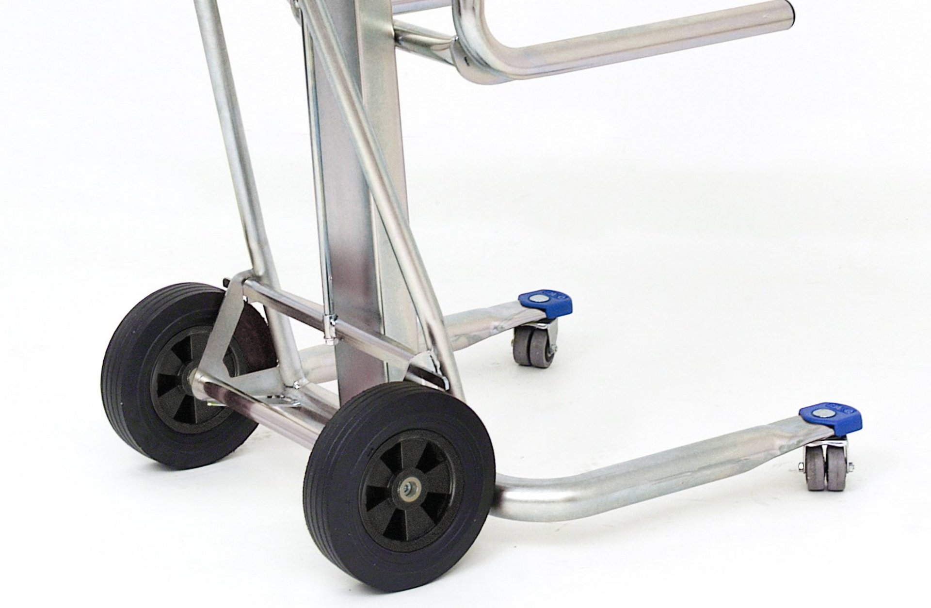 Roues arrière de 200 mm de diamètre permettant le transport de charges sur terrains accidentés et petites marches