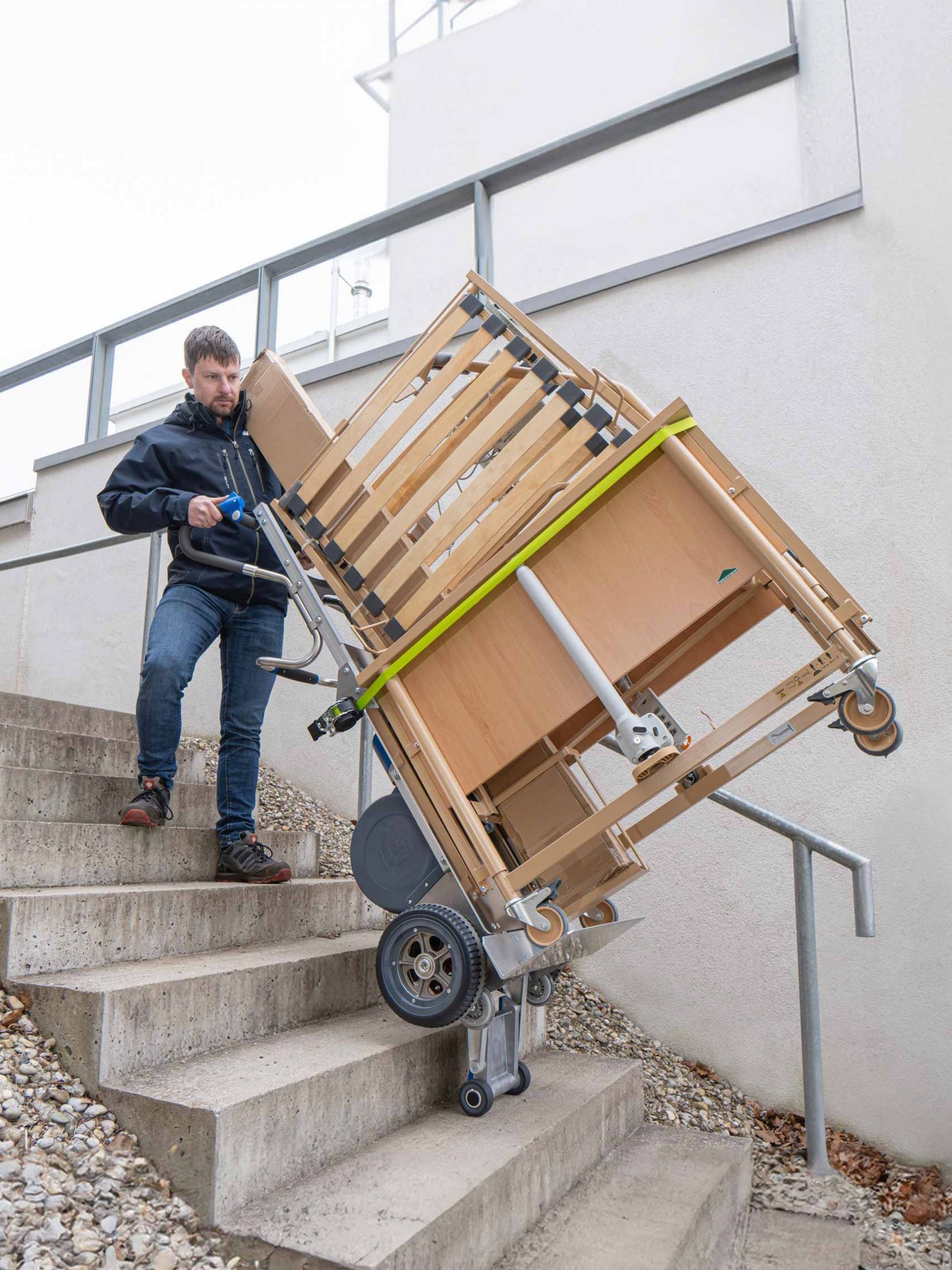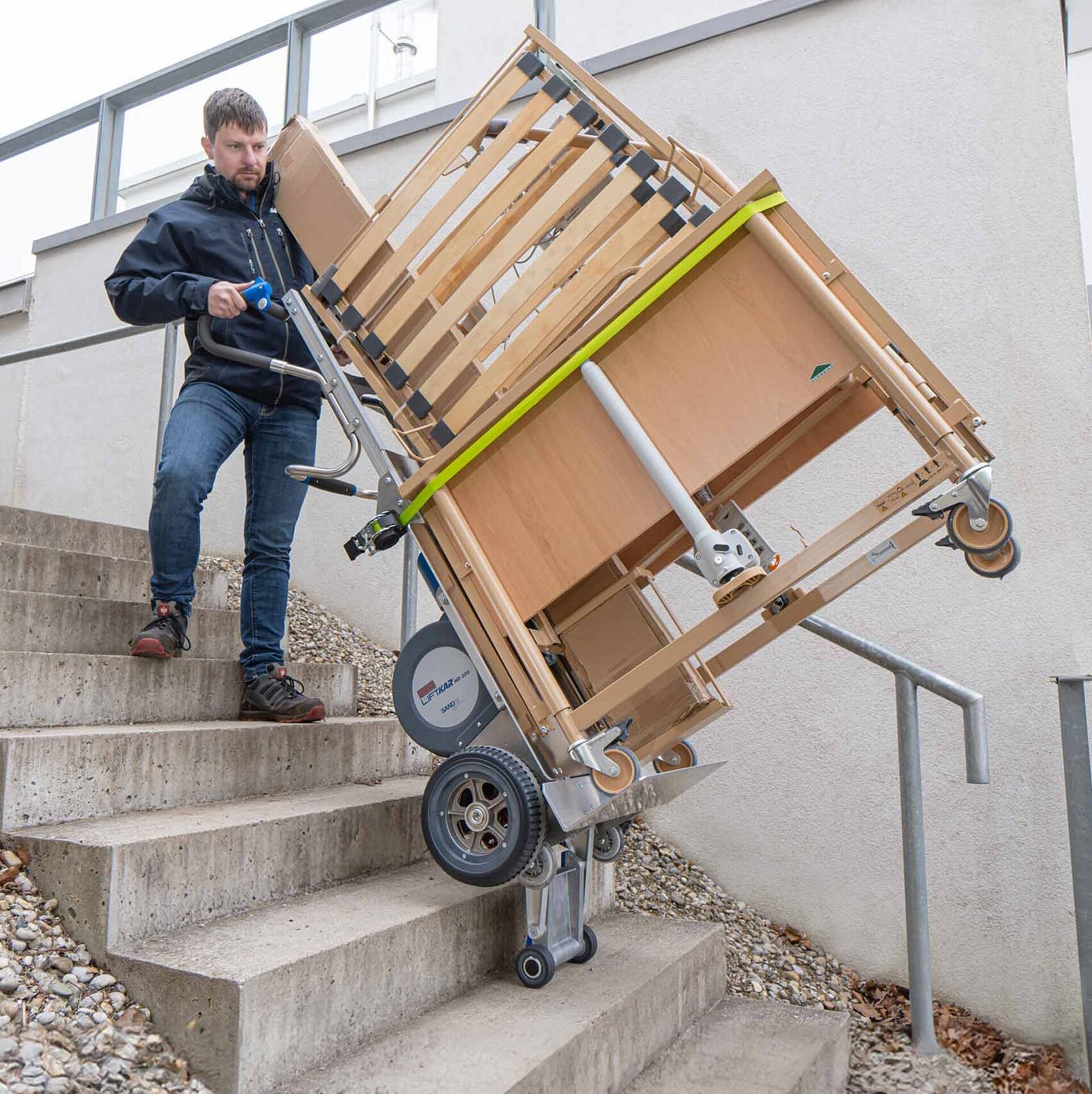 Powerful: Effortless transport of heavy care beds up and down stairs.