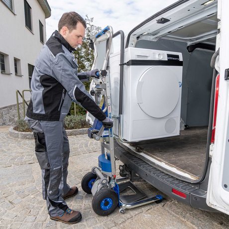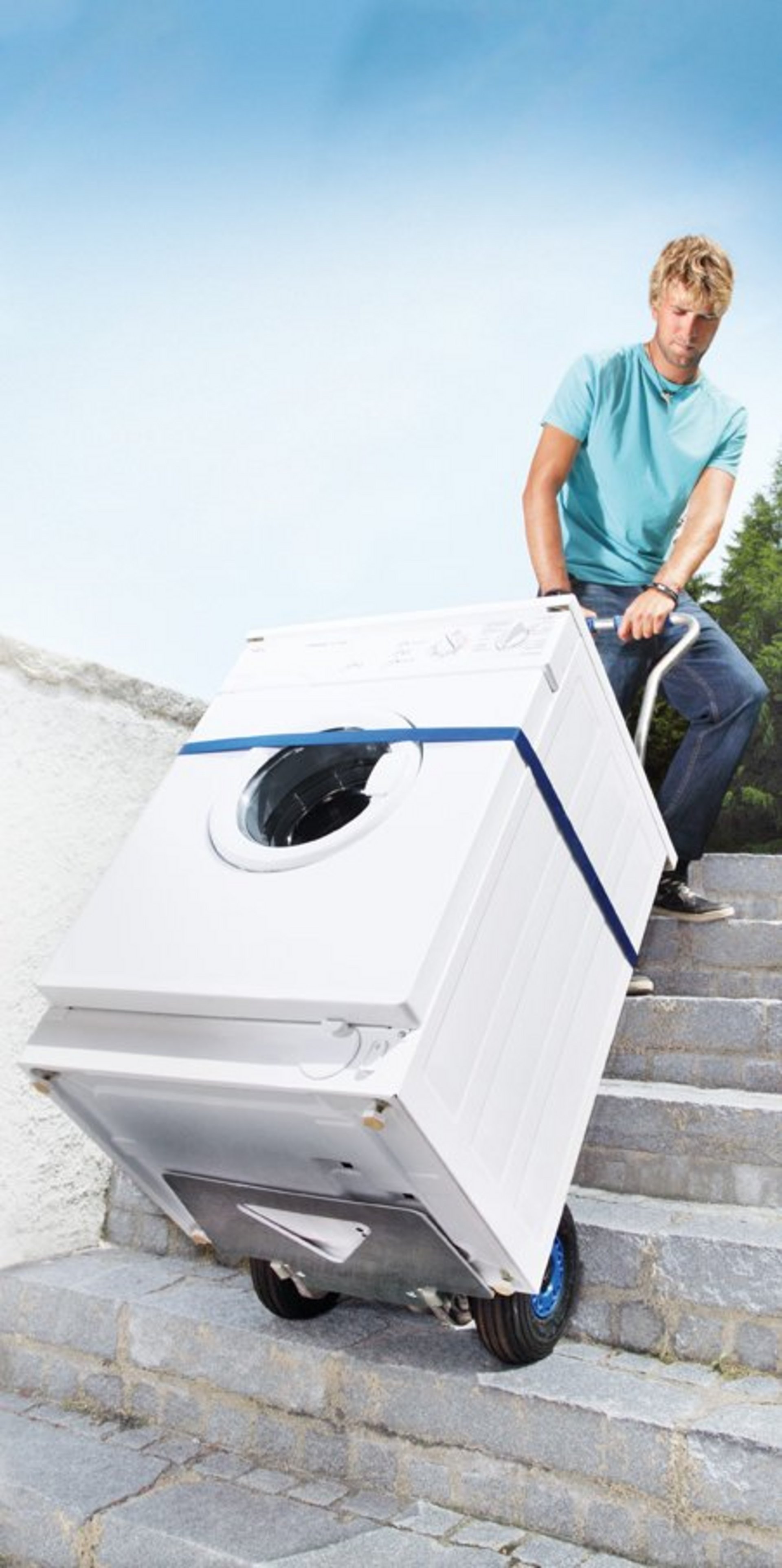 Our LiftKar Cargo Line, featuring models such as NEO LiftKar SAL, LiftKar SAL, NEO LiftKar HD, LiftKar HD, LiftKar MTK, UniKar and ModulKar, revolutionizes the transportation of white goods in the industry. Whether it's washing machines, refrigerators, dishwashers, or other heavy household appliances, our stairclimbers handle loads from 110 kg up to an impressive 360 kg.