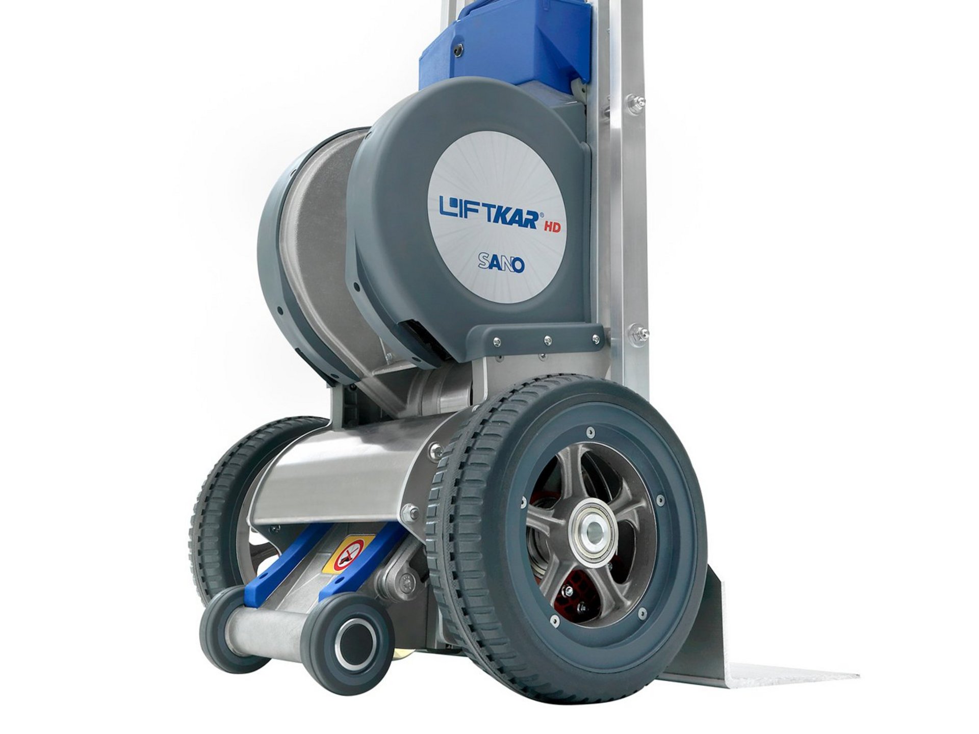Heavy loads are difficult loads. Especially for transporting up and down stairs. There is a risk of accidents. And sometimes you need two, or even three, people to get the job done. With the LiftKar HD you can transport heavy loads quick and safe up and down stairs. From heavy boilers and white goods through to bulky rolls of linoleum - with the LiftKar HD you can easily handle transport problems reliably and quickly. The SANO powered stairclimber is ideal for use in transport and logistics companies, retail, trade and industry.