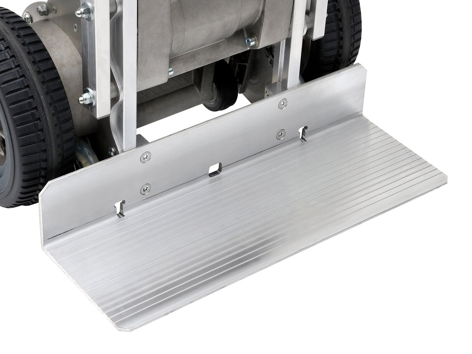 The system is activated in no time: simply lift the LiftKar HD, extend the Dolly and lock it into place. Transform in seconds from climbing stairs to rolling along on level ground. On level areas such as building sites and cobblestones, the puncture-proof tyres with an elastic, profiled running surface are ideal. The dolly version is available for both the UNI model and FOLD model.
