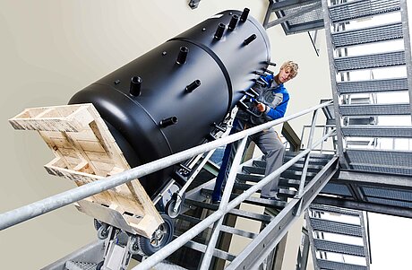 Whether electrical enclosures, drink dispensers, gaming machines, large boilers, solar heating vessels, heavy rolls of linoleum or stacks of crates, the LiftKar HD UNI has been specially designed to transport high and heavy loads over every kind of stairs