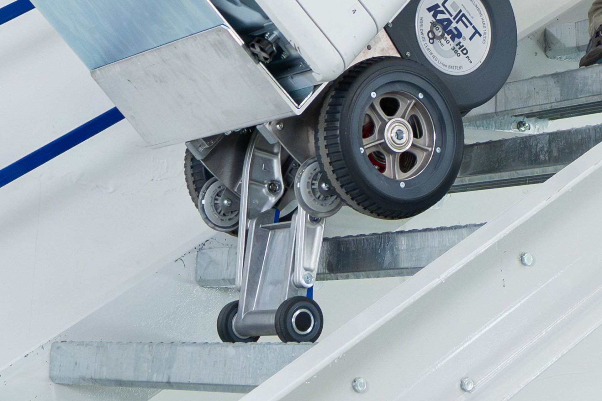 No problem! The LiftKar HD Pro - the powered stairclimber by SANO - enables fast and secure transportation of heavy loads over stairs.