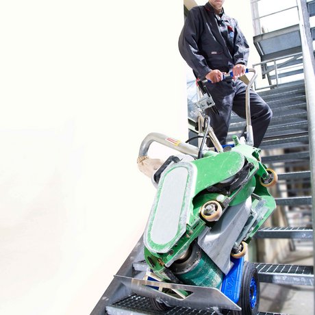 The entire LiftKar SAL Pro UNI range is characterised by its low weight of 17 kg. This makes transport even easier and quicker. Also outdoors the LiftKar SAL Pro UNI is easy to manoeuvre, especially on uneven construction site surfaces. Different types of tyres adapt the device to different operating conditions. Two handle variants are available. (loop or pistol grip).
