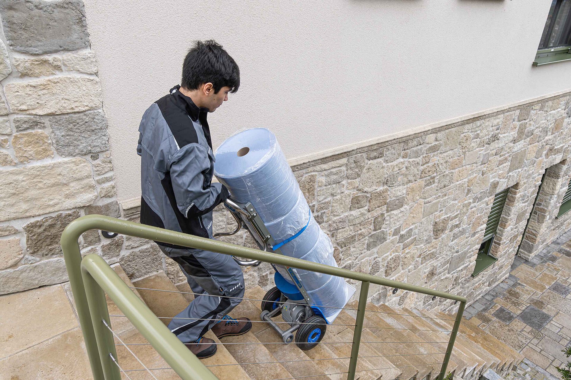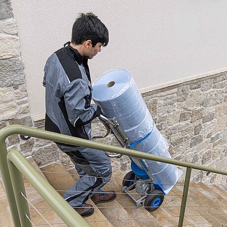 Thanks to the exceptionally ergonomic handle, the LiftKar SAL Pro ERGO model allows stability on the stairs and thus maximum control over the transported goods. Great for water bottles, beer kegs, stacks of tyres and many more.